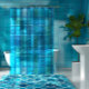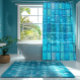 1. #Aqua Blues Translucent Tiled-Look Shower Curtain enhancing bathroom ambiance
