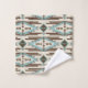 This attractive three piece towel set features a pretty southwestern aztec pattern in tones of aqua blue, brown, and tan. The large bath towel has a matching brown border at the bottom. Your monogram is in aqua on an aqua and brown lined banner. Very attractive, and personalized just for you.