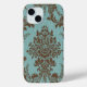 Aqua brown damask Case-Mate iPhone case