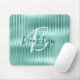Aqua Brushed Metal Stripes Script Monogram Mouse Pad