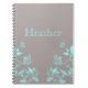 Sweet and dainty Butterfly Floral Notebook with a muted dusty gray background and turquoise butterflies and floral vine embellishments. This elegant floral notebook is full of girly flair and is perfect for jotting down notes or whatever else your imagination holds! Easy to customize, simply add the personalized text of your choosing in the text fields provided. Click on the "Customize It" button to find additional personalization options.