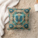 Aqua Butterfly on Tan Medallion Throw Pillow