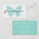A cute, simple aqua butterfly / moth print business card design. Shown here as a babysitting services business card, but may be used for any profession.