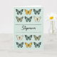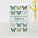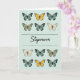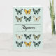 Designed with a pale aqua background, this card features twelve delicate winged insects arranged in a tidy grid of four rows and three columns. Each one is outlined in fine black lines that trace the wing patterns, giving them an old-fashioned, drawn-by-hand look. Soft seafoam, gentle olive, warm cream, and touches of golden yellow add a calm variety, like a quiet bouquet shared between close hearts ❤️. The matching spread-wing poses create a still, attentive mood, as if they’re pausing together in the same gentle moment. In the center, the word “Stepmom” appears in flowing black lettering, placed to draw the eye without overpowering the artwork. Thin black horizontal lines sit above and below the central word, acting like subtle dividers that keep the layout feeling balanced 🌼. The insects frame the middle text evenly, with four across the top and bottom rows and three on each of the two middle rows surrounding the center.