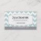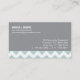 An aqua and white chevron pattern is dominant on this card that features a bulging frame to hold business information. A grey panel on the bottom contains a website url or any other information. Further contact and business information prints on the back against a gray background accented by a chevron strip. A versatile card for consultants, creative businesses, home-based businesses plus many more. Available in alternate colors with matching products.