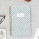 Clean, classic, and effortlessly refined, this personalized notebook from Redwood & Vine Design Co. features a white bamboo lattice pattern on a light aqua background. Inspired by timeless trellis and chinoiserie motifs, the structured design offers a polished, preppy look that works beautifully for everyday use. The cover is finished with a customizable name and “notes” label, making it perfect for journaling, work, school, or gifting. Subtle yet sophisticated, this notebook adds a fresh, tailored touch to your daily routine.