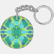 Aqua, Cobalt Blue and Yellow Tie Dye Pattern Keychain