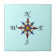 Aqua Compass Rose Ceramic Tile