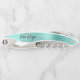 This distinctive personalized corkscrew features a modern aqua brushed metal background. Customize it with their name in stylish black handwriting script over a white monogram initial.