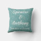 A beautiful throw pillow to remember your special day. This throw pillow is covered with the names of your choice and pattern of your beautiful invitation and other wedding products. A pillow of this design would make a very special , shower gift, bachelorette party, wedding gift etc.