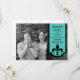 Modern and simple Fleur De Lis Banner Save the Date Announcements in turquoise featuring a scallop edge banner adorned with a chic damask flourish. This stylish save the date invitation is perfect for announcing your elegant wedding. Easy to customize, simply add a cute couple photo and your wedding details in the text fields provided. Click "Customize It" to find more personalization options.