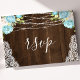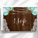 Aqua Floral Rustic Wood String Lights Wedding RSVP Postcard
