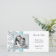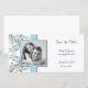 Elegant Save the Date photo cards, with an elegant aqua and grey floral scroll design. Easy to use template, available in several color schemes.