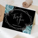 Aqua Floral Silver Geometric Black Wedding Thank You Card