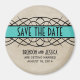 Elegant and classy Flourish Border Save the Date Magnet featuring a vintage look background and a fancy swirl and turquoise stripe border. This stylish design is the perfect choice for announcing your vintage deco chic inspired wedding. Easy to customize, simply add your wedding details in the text fields provided. Click "Customize It" to find more personalization options.