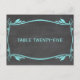 Elegant and trendy Flourish Chalkboard Table Number Postcard featuring a chalkboard look background and a fancy swirl and leaf art deco border in turquoise. Easy to customize, simply add the appropriate table number(s) in the text field provided. Click "Customize It" to find more personalization options.