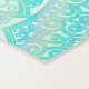 Pretty light mint colored yoga mat, with graphics of an aqua mandala on both ends. An aqua symbol of Ganesha, decorates the middle. Same design is featured on both the front and backside of the mat.