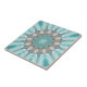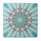 Ceramic tile featuring an original geometric star design based on images of the beach and ocean. A beautiful nature inspired floral design in fresh turquoise mint with sand colors. The image is large enough for both the small or large size tile and will fit nicely in a kitchen or bathroom.