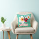 Bright aqua green, red, yellow and white girls name pillow, featuring ladybugs and flowers designed by exclusively by Sarah Trett. Customise with your name, this example reads Bella Ava. Would be a great additional to kid's aqua / red or nature themed bedroom to help personalize their space.