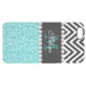 GIRLY AQUA TEAL BLUE GLITTER (PRINTED EFFECT) WITH BLACK AND WHITE CHEVRON PATTERN, MONOGRAMMED WITH YOUR NAME, YOUR INITIAL OR MONOGRAM ON A BLACK STRIPE OR BAND WITH A BORDER OF PRINTED WHITE DIAMONDS. TRENDY, CHIC COOL CUTE DESIGN FOR HER, THE TRENDSETTER, THE FASHIONISTA