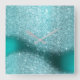 Aqua Glitter Teal Metal Glass Gray Minimal Square Wall Clock