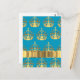 PERSONALIZE this chic elegant girly gold crown pattern on a blue green aquamarine color , with your own text, name or monogram, initials on the ribbon .