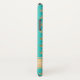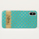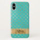 This stylish aqua blue and gold Case-Mate Barely There iPhone X Case has a pattern of small gold crowns and teal blue polka dots on it that are sure to be a standout! The case has a wide gold band across the bottom that is personalized with a name or other text.