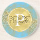 Aqua Gold Faux Glitter Peace Monogram Drink Coaster