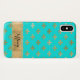 This stylish aqua blue and gold Case-Mate Barely There iPhone X Case has a fleur-de-lis pattern in gold that are sure to be a standout! The case has a wide gold band across the bottom that is personalized with a name or other text.