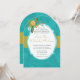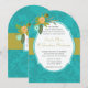 Aqua Golden Lime Chartreuse Damask Wedding Invite