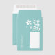 Aqua green thick cardstock envelope mailers with a happy easter message and cute flower illustration. Features your return address, a custom business logo, and space to handwrite or add a label with the recipient's address. Easily edit it with your company address and change the colors or fonts by editing the template design.