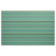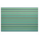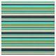 This design features a pattern of stripes having colors like aqua, green, lavender, and black.