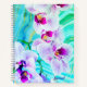 A vibrant and modern floral notebook featuring bold purple orchid blossoms layered over flowing watercolor textures and an aqua teal green geode-inspired background. This colorful, artsy design feels creative, uplifting, and feminine — perfect for journaling, note-taking, planning, or school.