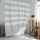 Add a Mediterranean spa feel to your shower with our luxe striped shower curtain. Horizontal striped design takes its cue from Turkish towels, with a pinstripe banded bottom in mushroom gray-beige with a navy blue cast, and wider rugby stripes at the top in pale aqua and white.
