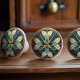 The "Aqua Harmony Floral Ceramic Knob" is a beautiful representation of Art Nouveau design, featuring a central floral motif with petals radiating in soft shades of aqua blue and cream. The petals are outlined with delicate golden lines, adding a touch of luxury and emphasizing the intricate details. The symmetrical pattern creates a harmonious and balanced look, while the soft color palette evokes a sense of tranquility and calm. The design is framed by a subtle, geometric border that enhances the overall elegance of the piece. Perfect for adding a touch of refined beauty to any room, this ceramic knob is a testament to the seamless blend of functionality and artistic craftsmanship.