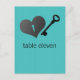 Thank your wedding guests with the elegance of this whimsical Heart Lock and Key Table Number Postcard in turquoise. This unique table postcard features a metal look heart-shaped lock with a matching key on a digital art rendered wood panel background. This lovely design would be the perfect choice for a sophisticated wedding. Easy to customize, simply add the table number in the text field provided. Click on the "Customize It" button to find additional personalization options.
