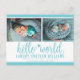 Aqua Hello World Photo Birth Stat Announcement Postcard