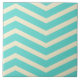 A colorful, contemporary pattern featuring a small chevron design of aqua and cream herringbone, zigzag stripes.