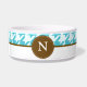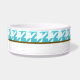 Aqua Houndstooth Pattern Monogram Pet Bowl