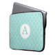 An elegant dusty aqua lace pattern decorates this stylish laptop sleeve. Personalize this laptop sleeve by changing the monogram letter to suit your needs. The design is from original art.