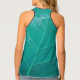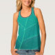The abstract artwork by ZoeSPEAK on this racerback Tank Top is an original photograph of a sea grape leaf, after a light shower. A few rain drops can be seen in the closeup photo, which shows the veins of the leaf making parallel linear patterns diagonally across the tinted aqua design.
