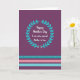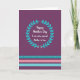 This design shows a deep aubergine background that feels calm and celebratory at once, with a centered white message that reads clearly and warmly ❤️. The lettering uses flowing, connected strokes that soften the look and suggest closeness, like a gentle note shared between friends. A circular wreath of stylized aqua and teal leaves surrounds the words, framing them like an embrace and drawing your eye inward. The text sits in the middle of the wreath, evenly spaced, with the bright white color standing out sharply against the dark purple. Near the bottom, three horizontal color bands—teal, blush pink, then teal again—add structure and a quiet rhythm to the layout 🌼. Along the top edge of the upper teal band, a neat row of small white dots forms a delicate trim. The leaves in the wreath alternate slightly in size and angle, creating a balanced ring around the central message. The lower stripes run straight across the card, with the blush pink band sandwiched between the two teal bands.