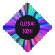 Use your own photo to create a personalized graduation cap topper! Personalized "Class of 20XX" message in bright magenta text. The accompanying digital art features a bright neon pink, aqua and blue abstract fractal design, but you can add your own photo or image. The black circle gives you an area on the design to add custom text. Customize the font style, size and color as needed for your personalized text message.