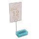 I ordered these table number holders for our beach wedding, and I absolutely love them. The color matched our wedding and theme perfectly. I love that I can reuse them as picture holders and they have our name and wedding date on them. I highly recommend this product. If you are even considering them, just buy, you will not be disappointed. They look just like the picture and they arrived quickly. I can't say enough good things; we just loved them!! The color and printing were exactly as shown; just beautiful.