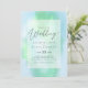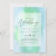 Modern wedding invitation featuring text template fields on both sides and a cloud of greeny blue color.