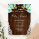 Aqua Mint Rustic String Lights Floral Baby Shower Invitation