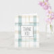 Aqua Mint Plaid Stripes personalized thank you card