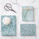 Aqua Mint Zebra Print Confetti Glitter Wrapping Paper Sheets