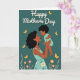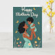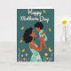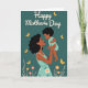 Designed with a tender illustration, the card shows a woman with dark, curly hair and warm-toned skin holding a small child close, their eyes meeting with a soft, affectionate look ❤️. Both figures wear gentle aqua-colored clothing that stands out against a deep teal background, giving the scene a calm, cozy mood. Golden yellow butterflies drift around them, adding a light, airy touch like a quiet moment shared between close friends or family. Along the bottom edge, clusters of flowers in soft pink, orange, and white sit among small leafy sprigs, bringing in a fresh springtime feel 🌼. At the top, a large line of white lettering is centered and easy to notice, with smaller white text tucked beneath it. The figures are shaded with smooth highlights and soft shadows that make their faces and arms feel close and comforting. The butterflies are scattered across the upper half, while the floral border frames the lower edge in rounded petals and warm accents.