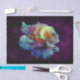 Pretty Blue, aqua yellow n pink Tie-dyed dew kissed rose with a black and violet background.